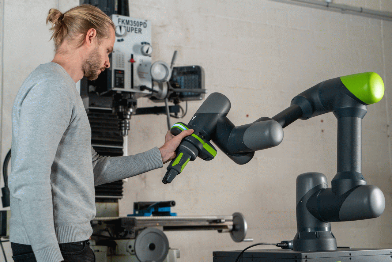 Cobots verändern das Bild der zukünftigen Produktion nachhaltig. Im Gegensatz zu klassischen Industrierobotern, lassen sich Cobots vergleichsweise einfach Programmieren und ermöglichen den Betrieb ohne eine Einhausung oder umfassende Sicherheitssysteme, wie Lichtschranken.