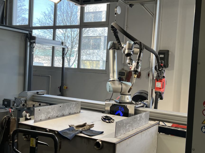Auch einzelbetriebliche Vorhaben und Kooperationsprojekte in regionalen Betrieben werden mit bis zu 10.000 € gefördert. Das Ziel dabei ist nicht nur die effiziente Realisierung langfristig nutzbarer Cobot-Applikationen z.B. für das Schweißen von Blechen oder das Bestücken von Fräsmaschinen.